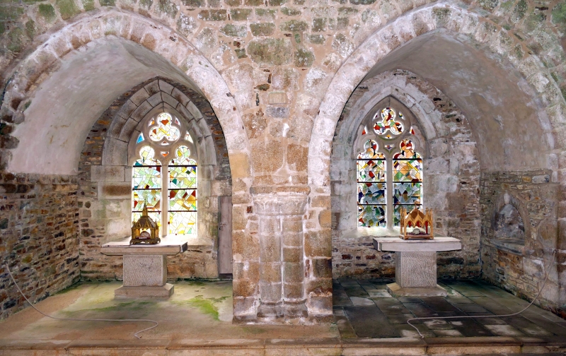 Les deux chapelles du transept nord abritent les reliquaires des saints fondateurs de la Bretagne Chrétienne.