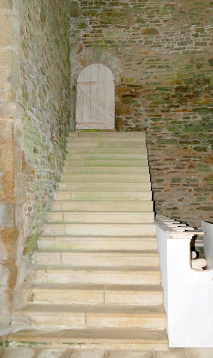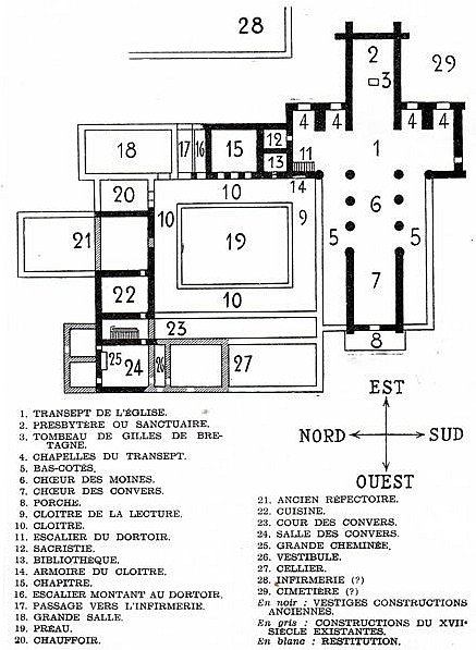 Le chœur de l’église, primitivement de forme carrée, avait peu de profondeur. D’étroites ouvertures l’éclairaient. Au XVème siècle, l’abside romane est remplacée par un vaste presbyterium de style gothique : la lumière envahit le sanctuaire par cinq grandes verrières Au centre de ce chœur, se trouve la pierre tombale de Gilles de Bretagne, autrefois recouverte d’un gisant en bois reposant sur une dalle d’ardoise. (Ce gisant peut être vu au musée de Saint-Brieuc)